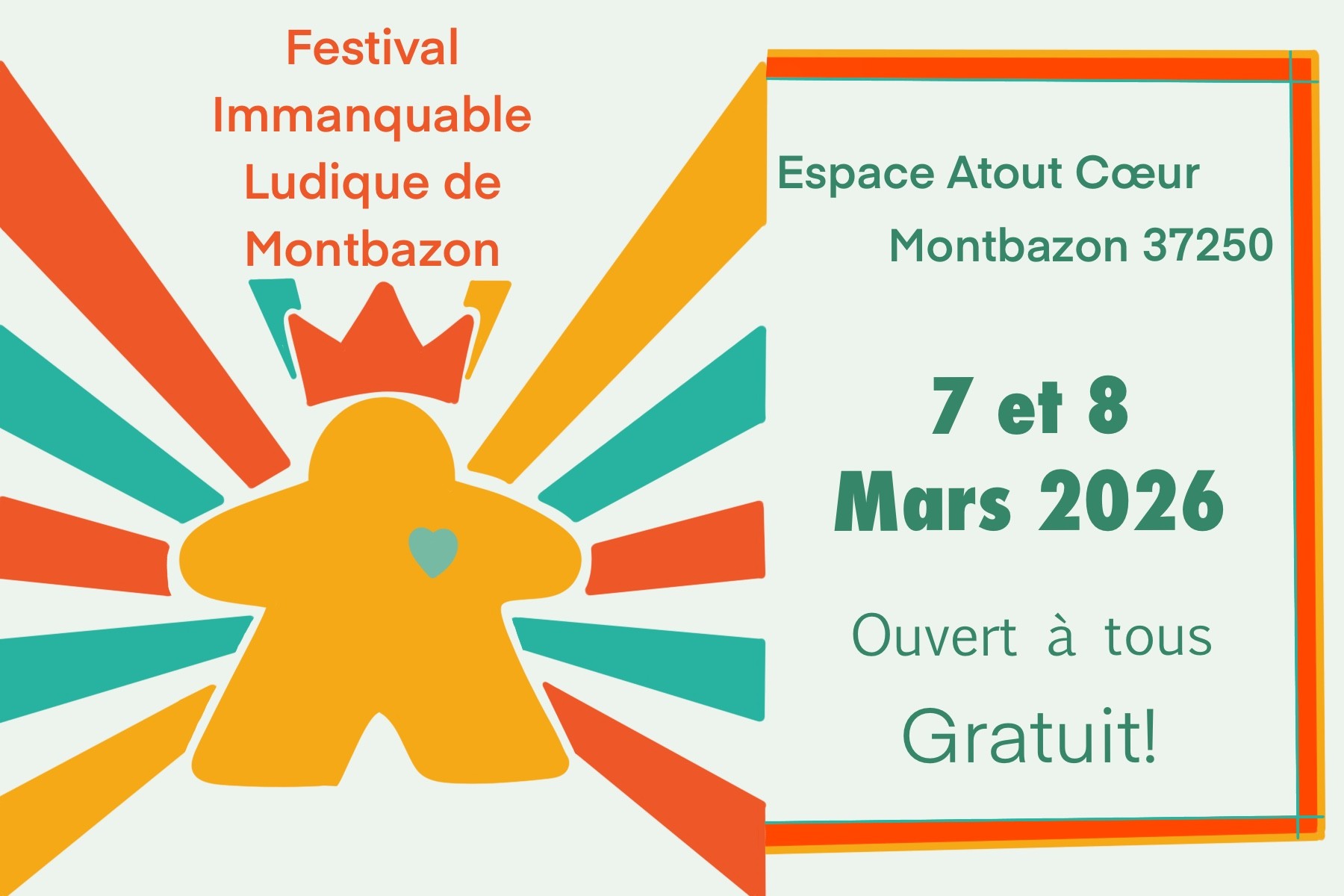 Le Festival Incontournable Ludique de Montbazon (FILM) est un événement annuel dédié aux jeux de société, organisé par l'association A Kadoc. La prochaine édition se tiendra les 7 et 8 Mars 2026 à l'Espace Atout Cœur, situé au Parc de la Grange Rouge à Montbazon (37250). L'entrée est gratuite et l'événement est ouvert à tous : familles, enfants, passionnés ou simples curieux.